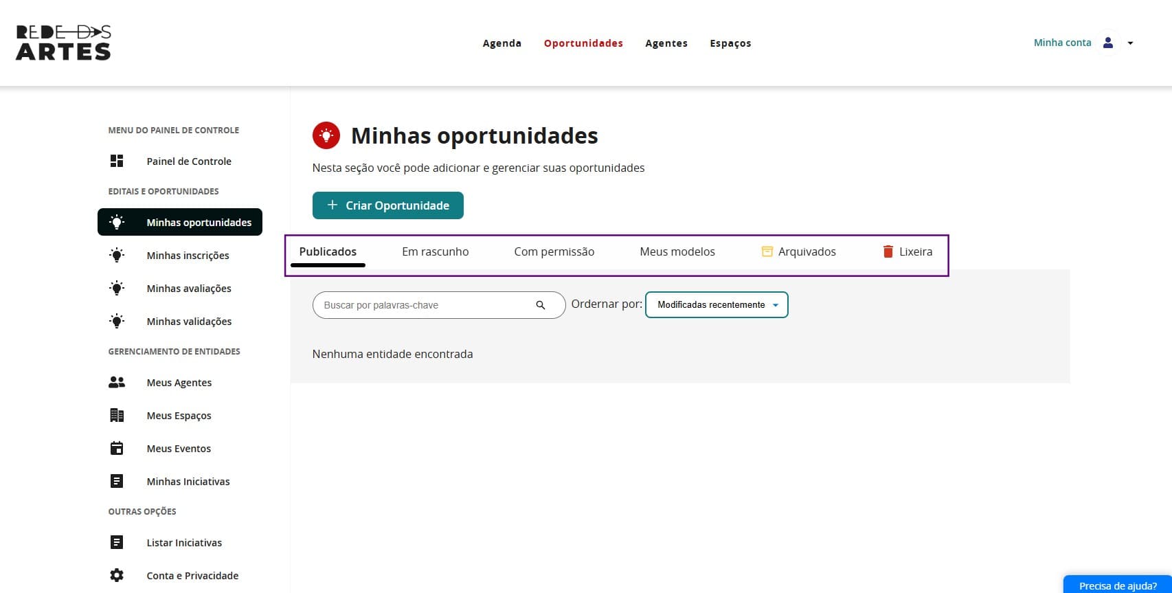 A definição correta da área de interesse aumenta a relevância da oportunidade dentro da Plataforma, garantindo que ela seja encontrada por agentes artísticos alinhados à sua proposta.