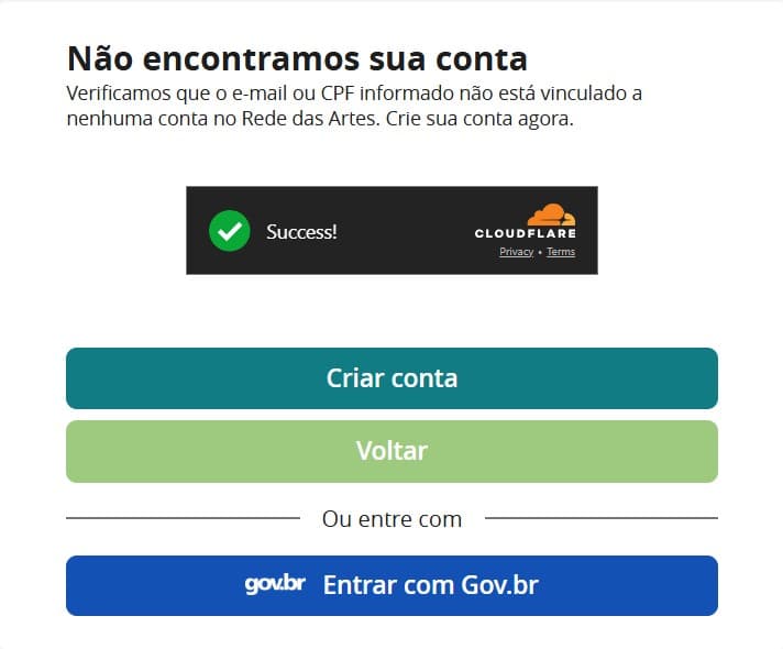- A Rede das Artes reporta que você não tem conta e te encaminha para a página de criar conta: